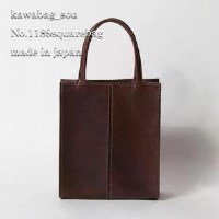 鞄職人がつくる【受注生産】オイルヌメ革スクエアバッグ(チョコブラウン×裏地グリーン) [0311]