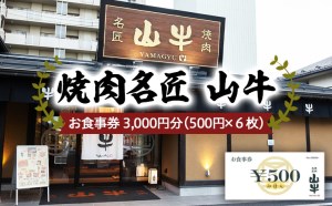 焼肉名匠 山牛 お食事券 3,000円分