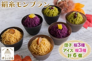 絹糸モンブラン《桜》バラエティセット (団子3種、アイス3種 [各1個])|ゆうとはる 高級 スイー