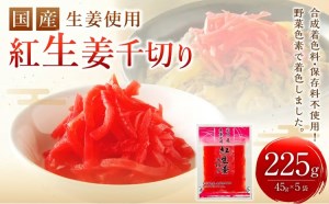 国産 生姜使用 紅しょうが千切り 45g×5袋 計225g