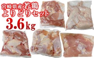 宮崎県産若鶏 5種 合計3.6kgセット 小分け 12パック もも肉 手羽先 手羽中ハーフ 手羽元