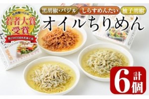 オイルちりめん3種詰め合せ(合計6個・黒胡椒バジル80g、柚子胡椒80g、しらすめんたい80g×各2