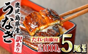 <訳あり>東串良町 うなぎ 蒲焼 (無頭)(5尾以上・計約1kg・タレ、山椒付)