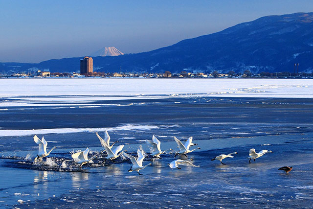長野県の中央、諏訪湖の北側に位置し、特急あずさで東京駅から約2時間半の距離にあります。諏訪湖や八島湿原などの豊かな自然、諏訪大社の門前町・中山道と甲州街道が交わる温泉宿場町としての歴史、7年に1度開催される日本三大奇祭「御柱祭」など、来て見て楽しい町です。