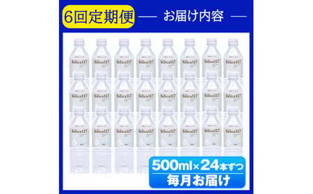K-134-F 《定期便:6回》Silica117 500mlペットボトル×24本ずつ(計144本/72L)【シャディ】霧島市 水 シリカ シリカ水 シリカウォーター ミネラルウォーター ミネラル成分 飲料水 天然水 軟水 温泉水 ペットボトル 定期便