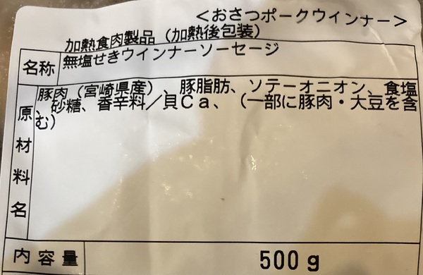 他にも無塩せきのハム、ベーコンがふるさと納税ではいただいているのですが、ウインナーとなるとなかなか無塩せきのものが見つからず、検索してみてこのおさつポークがヒットしたので頼んでみましたが、ジャスト10日で届きました。500gで25本くらいずつの袋が2つ梱包されていました。 原材料は、「豚肉(宮崎県産)、豚脂肪、ソテーオニオン、食塩、砂糖、香辛料/貝Ca、(一部に豚肉、大豆を含む)」 貝 Caはよくカルシウムサプリなどの成分に書いてありますが、貝殻焼成カルシウム、主にホタテや牡蠣の貝殻を焼成して作られるんだそうです。ソーセージでは、原材料の吸着性を高めたり食感を出すために使われる天然由来の成分のようです。 亜硝酸ナトリウムなどの発色剤やリン酸塩、保存料(ソルビン酸など)、酸化防止剤、pH調整剤などは含まれておらず、たいへん安心しました。 コチンコチンに冷凍されているので、フライパンで焼くよりもお湯でボイルしています。 食感は、日本ハムさんや伊藤ハムさんのようなパリッと感を感じさせるものではなく、昔ながら、というか、ほどよいかたさの皮なので、個人的にはパリッと感がありすぎる昨今の業界の流れに抗うようで、好感が持てました。 自然な塩味と甘みで、そのままボイルでも、また解凍してソテーしてもおいしいですし、刻んでスープに入れても燻製感が心地よいスープに仕上がります。ナポリタンの具材としては、このソーセージがベストマッチでした。