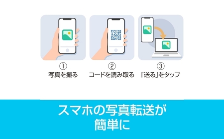 ポイント4:スマホにある写真をパソコンに転送する際、ケーブルなど必要なくすぐできます。「ピタリ四角8」内のQRコードをお持ちの携帯電話でスキャンし、転送したい写真を選択します。それだけで写真をアプリに導入できます。