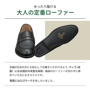REGALの代表的な製法であるグッドイヤー・ウエルト式製法で作られた重厚感のあるローファーシューズ。中物と言われるクッションをタップリと入れる事で長時間歩いていても疲れにくく、履き込むうちに中物が足裏の形に沿って変形をすることでフィット感が高まります。長く履いて頂ける一足です。ウィズは3Eでゆったりした作りになっております。