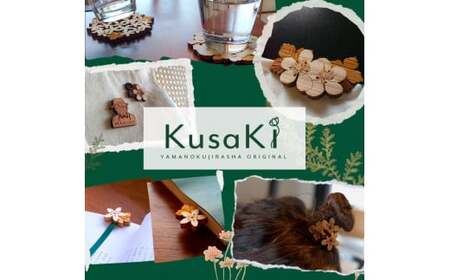 高知が誇る植物学者「牧野富太郎博士」が愛した花〈バイカオウレン〉を中心にデザインした『KusaKi』シリーズ。日常生活を彩る木製雑貨と、オリジナル手ぬぐい3枚をセットにしました。贈り物にもおすすめです。