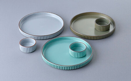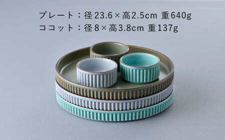 【波佐見焼】【ギアシリーズ】プレート(大)&ココット3色セット(青磁・グレー・カーキ)食器 皿【大新窯】[DC128] 波佐見焼
