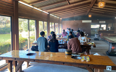 バーベキューは炭火焼き用にカットされた厚切りの黒毛和牛とこんがりと焼き上げた若鶏と自慢の三田米のしい茸はいずれも絶品です。
