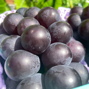 ピオーネは巨峰とマスカットオブアレキサンドリアを交配させた品種で、巨峰のような濃厚な甘みも持ちつつ、マスカット特有のさわやかな食味が特徴です。