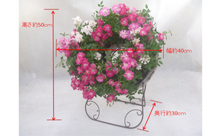 華やかな3色のレンゲローズをリース状に仕立て、付属のイーゼルに載せ、長く楽しめます。ギフトとしても大人気!!!