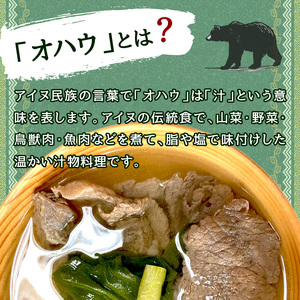 《14営業日以内に発送》ヒグマのオハウ 2人前 ~北海道産のレア食材を使ったアイヌの伝統食をご自宅で~( 熊肉 伝統食 )【140-0028】