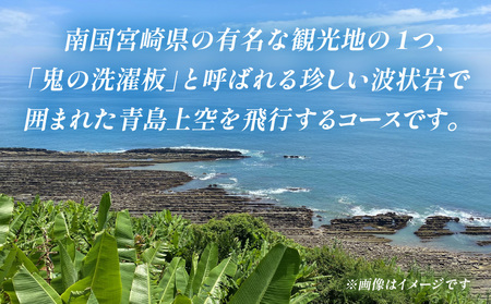 南国宮崎県の有名な観光地の1つ、「鬼の洗濯板」と呼ばれる珍しい波状岩で囲まれた青島上空を飛行するコースです。