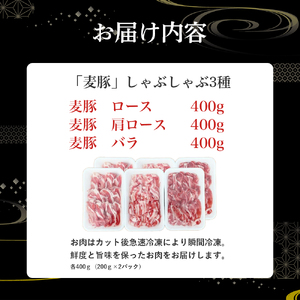「麦豚」代表的な3部位、ロース・肩ロース・バラをしゃぶしゃぶ用にスライス。
