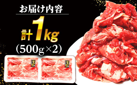 博多和牛の旨みがぎゅっと詰まった、切り落とし肉を500g×2パックでお届け。