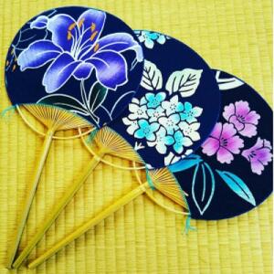 日本三大うちわ「房州うちわ」柄長3本組セット ゆかた地(花柄おまかせ)【1488150】
