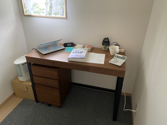 今まで居間で勉強していて集中出来ませんでした。 専用の勉強机が欲しくて、返礼品に選び寄付させてもらいました。 写真で見ただけでは良くわからず、失敗しても良いや!今よりは良いだろうと思っていました。 実際使ってみて、サイズもちょうど良いし、手触りに高級感を感じます。 最近は席に着くとまず表面を撫でるところから始めます笑 机についている引き出しが若干に硬いのと、最近の臭いの強いダンボール臭が気になりますが、どちらも使っているうちに良くなっていくと信じて使っています。 サイズ感がわかる様に写真を添付しました。参考にしてみてください。