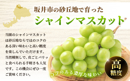 当園のマスカットは砂丘地ならではのコクのある深い味わいと高い糖度を楽しんでいただけます。