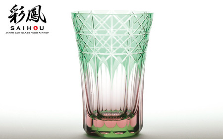 江戸切子 菱鱗重文様 【ピンクグリーン】M-7528-PG | 江戸切子 グラス 芸術 埼玉県 草加市