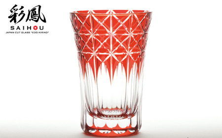 江戸切子 菱鱗重文様 【アカ】M-7528-R | 江戸切子 グラス 芸術 埼玉県 草加市
