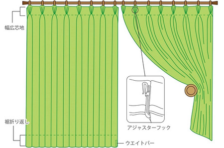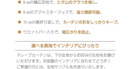 カーテンのヒダを綺麗に保つようプリーツ形状加工を施すため、裾部分のウェーブが美しくカーテンの開閉などでヒダが乱れません。