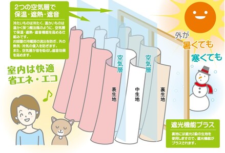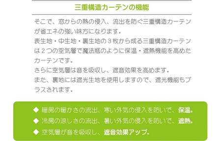 【 オーダー カーテン 】 三重構造 カーテン ( 中生地 ・ 裏地付 ) シルキーリビング 三重構造カーテン カーテン 遮光 防音 断熱 省エネ 形態安定 形態安定プリーツ加工