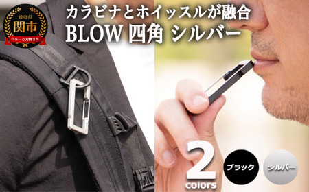 普段使いしやすい2way仕様! カラビナホイッスル ”BLOW” 四角形 シルバー 防災 防犯 笛