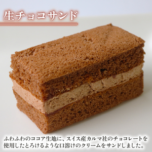 ふわふわのココア生地にスイス「カルマ社」のチョコレートを使用した生チョコサンド、ふわふわの抹茶生地にとても香り豊かな「丸宗」の宇治産抹茶を使用した濃茶生チョコサンドに、とろけるような口溶けのクリームをサンドしました。