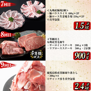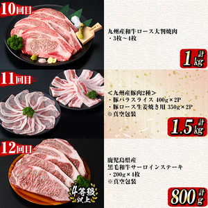 【定期便全12回】牛・豚堪能定期便(12ヶ月連続・計15.7kg超) 黒毛和牛 国産牛 九州産 豚 豚肉 肉 牛肉 国産 4等級 訳あり 小分け 真空包装 冷凍 t0196-001