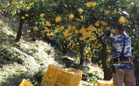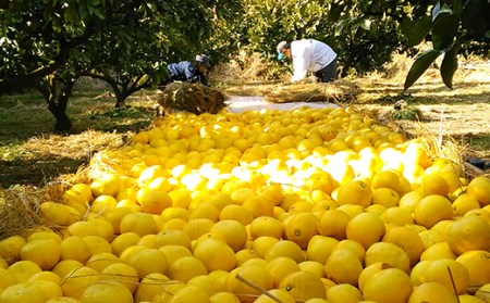 先代がこだわった「野囲い作り」を受け継ぎ、じっくりとひと月寝かせて追熟させた清家農園の宿毛文旦。