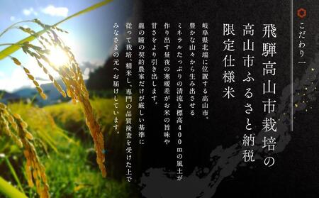 品種改良ではなく、2000年に岐阜県下呂市で(株)龍の瞳社長・今井隆が偶然発見した突然変異の品種「いのちの壱」を用い、契約栽培で育てた希少米です。