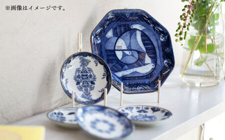 独特な濃淡が魅力の原画を、波佐見の代表的な色彩である呉須(ごす)のグラデーションで表現したイヤープレート。