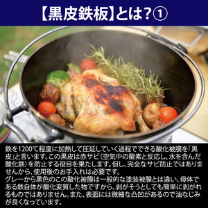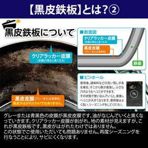 お手入れ簡単な黒皮鉄板。油なじみが良く、金タワシを使う事も可能です。
