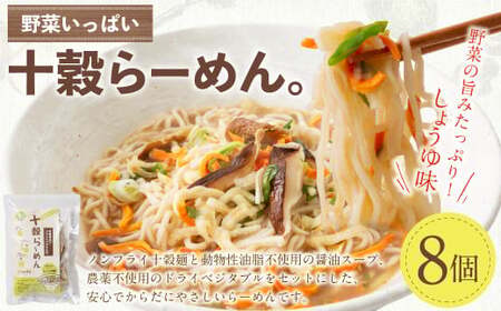 野菜いっぱい十穀らーめん。99g×8個入り|野菜 ラーメン 麺 ノンフライめん しょうゆ 8個 備蓄 防災食 袋麺