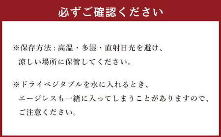 ・ドライベジタブルを水に入れるとき、エージレス[脱酸素剤]も一緒に入ってしまうことがありますので、ご注意ください。