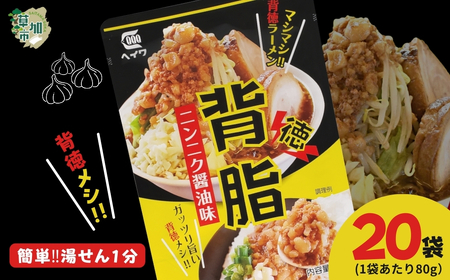 背脂 ニンニク醤油味 80g × 20袋 | 背脂 背油 背徳メシ ニンニク にんにく 豚骨 トンコツ スープ 豚肉 ご飯 チャーハン 炒飯 カレー ラーメン 本格派 二郎系 レトルト インスタント パウチ 湯煎 湯せん がっつり ガッツリ やみつき 美味い 旨い おいしい 美味しい おすすめ オススメ 取り寄せ 自宅で 簡単 時短 平和食品工業 埼玉県 草加市
