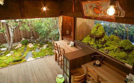 一歩中に入れば街の喧騒から切り離されたかのように美しい苔の景色が広がり、どこか懐かしい木の香りに包まれ、優しい小鳥の声と小川のせせらぎが聞こえてくる。