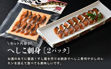 炙りへしことへしこのお刺身の両方がお楽しいただけます。