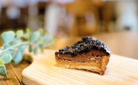 淡路島の乳製品や卵を使ったタルト生地に、ベルギー産の濃厚なチョコをたっぷりかけて焼き上げ、仕上げに淡路の海水から取れた塩を散りばめました。