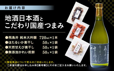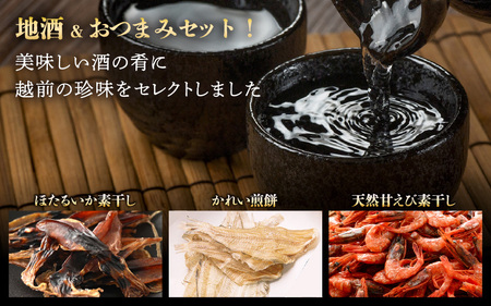 日本酒 つまみ セット 純米大吟醸酒 720ml 甘えび 素干し ほたるいか素干し かれい煎餅 各1パック 珍味 / ギフト お中元 お歳暮 御中元 [e34-b005]