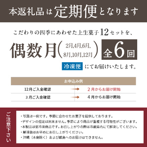 季節の上生菓子12個入り×6回の配送(偶数月にお届け)