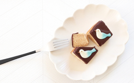 その湘南クーヘン プチカットをベースにチョコレートで仕上げた青い鳥クーヘンは藤沢市の市の鳥「カワセミ」や「幸せの青い鳥」をイメージしています。