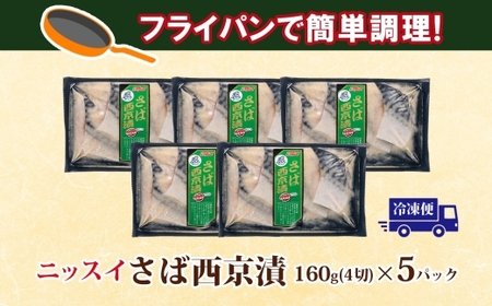 ニッスイ さば西京漬160g(4切)×5個 800g 漬ける 西京 さば 鯖 魚 さかな 脂の乗った 白味噌 みそ 手軽 ご飯 白飯 ご飯のお供 酒 つまみ ニッスイ 千葉県 船橋市