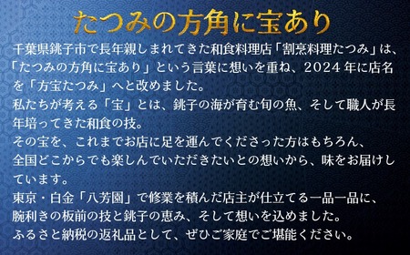 銚子だからこそ味わえる海の恵みと、料理人の確かな技が生み出す「本物のおいしさ」を、ぜひご家庭の食卓でご堪能ください。