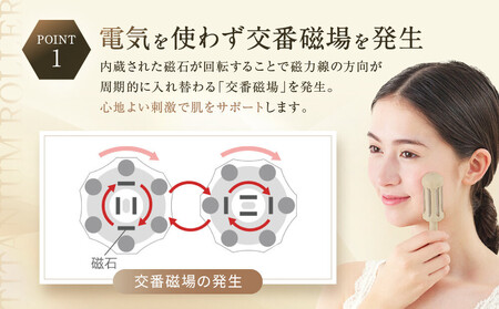 ヒミツは磁石の反発による「タッピング効果」。リズミカルなタッチで肌を適度に刺激。ピンとハリのある肌へ。