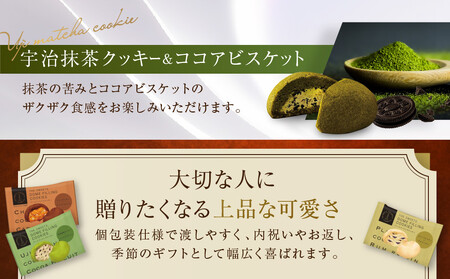 【宇治抹茶クッキー&ココアビスケット】宇治抹茶の生地にザクザク感が楽しいココアビスケットが入ったクッキー。