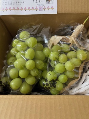 シャインマスカットが大好きな子どもたちは大喜びでした。少し皮は厚めかな?とも思いましたが、甘味は十分。ジューシーでパリパリしていてとっても美味しかったです。あっという間に大量のシャインマスカットはなくなりました^ ^来年もお願いします!