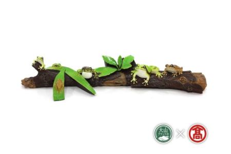 平成12年大山に工房を構え、自然史系博物館の展示物や、グッズを制作。都会ではあまり見られない小さな生物達をフィギュアとして再現。縁起物の蛙が6匹、あなたの玄関でお客様や家族の帰りをお迎えします。